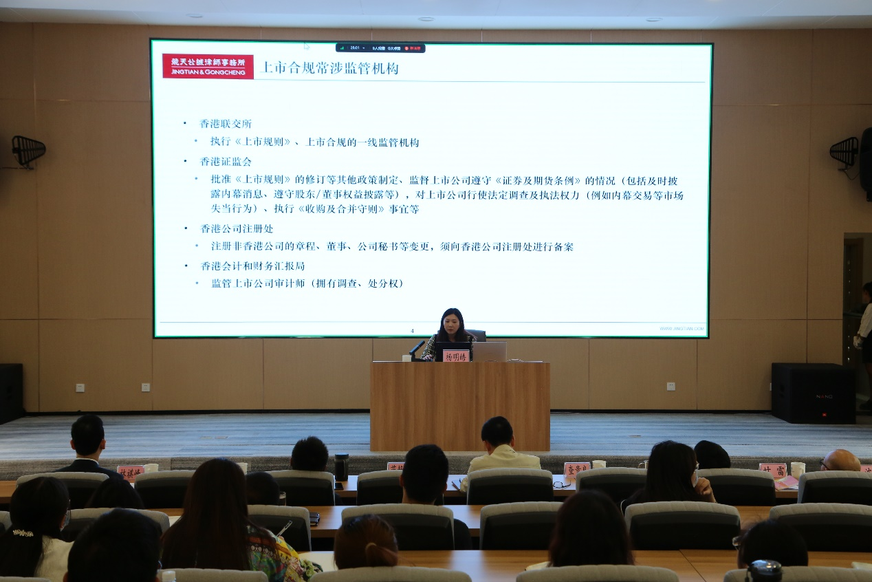 培训讲师通过法规讲解及典型案例分析相结合的方式,深入解读香港联合交易所《上市规则》及最新监管资讯,全面介绍了上市公司规范运作要求及董监高履职、信息披露、内幕消息、关连交易、企业管治规范等内容,通过用具体案例进一步强化在座培训人员的合规意识,切实体会到合规的重要性。